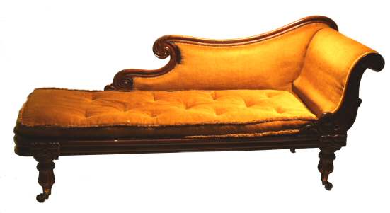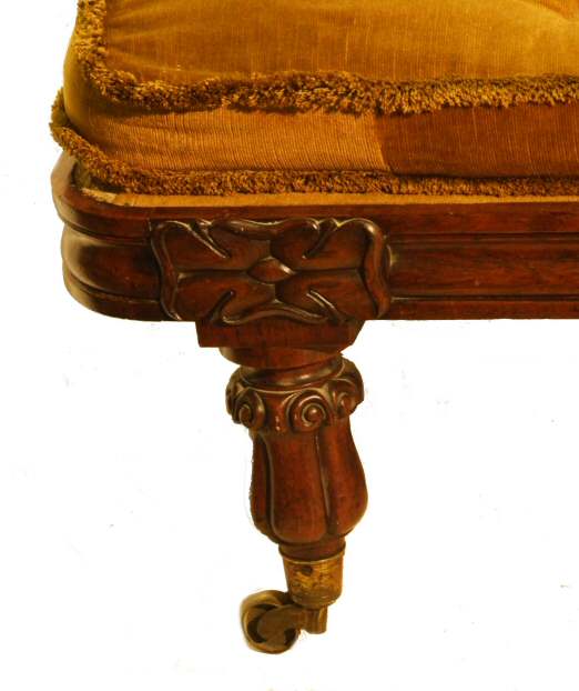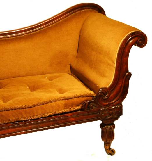 Stunning Regency Rosewood chaise A beautiful example of a Regency rosewood chaise with wonderful rich deep rosewood carved frame supporting a slip cushion (will be traditionally reupholstered included in the price). The legs with original brass casters have fine lobed and upturned supports and the back has beautiful accanthus detailing to the support. The price includes reupholstering....if you are quick you can direct us in the colour of your choice. Length 73" aprox Height 34.5" Price £2450 Email Us for a delivery quote :Click Here (Ref :UPH110)