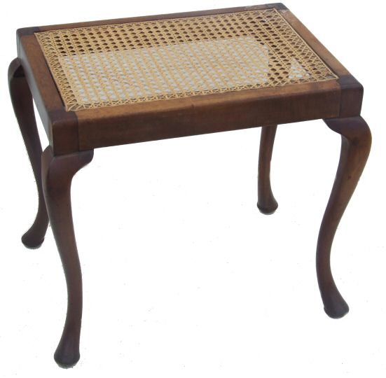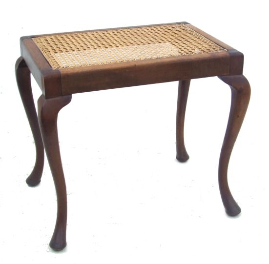 A pretty little antique dressing table stool dating to 1920 on cabriole legs with cane seat.