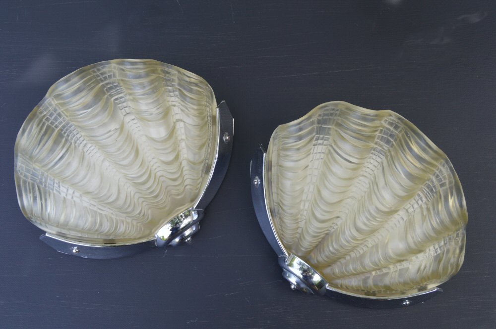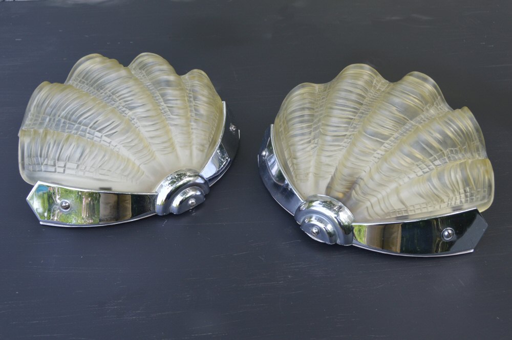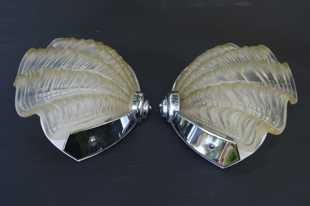 of Art Deco Shell Wall Lights with the palest hint of lemon