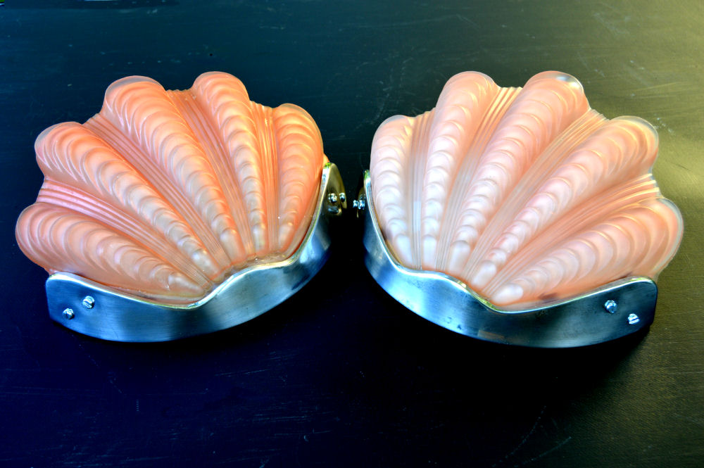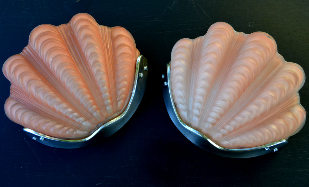 A truly beautiful pair of Art Deco Wall Lights of shell form . These