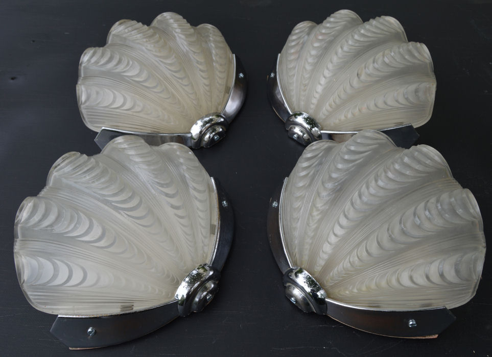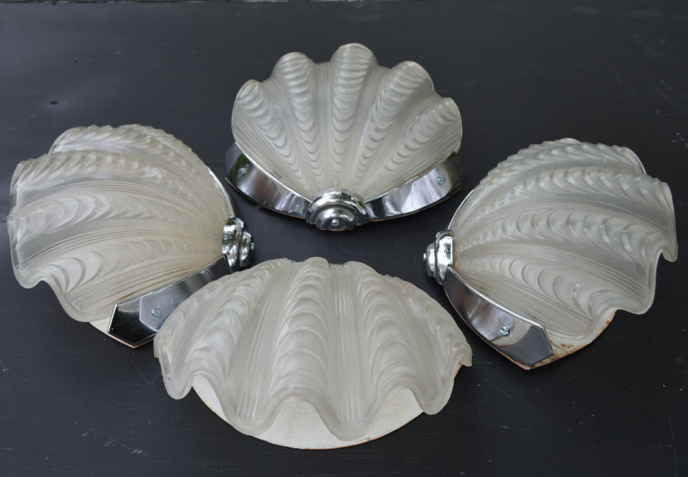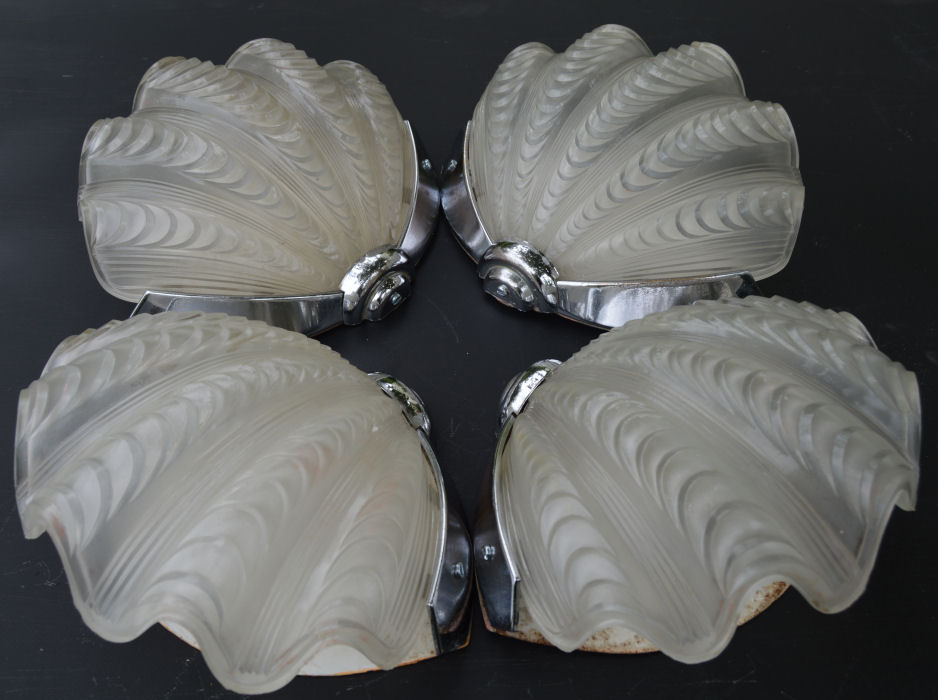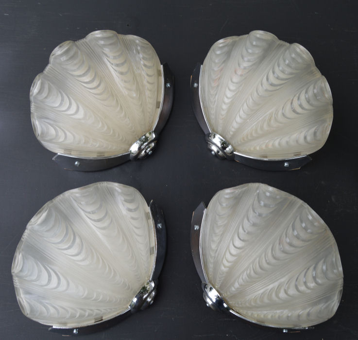 A beautiful set of 4 matching Art Deco Wall Lights of shell form .