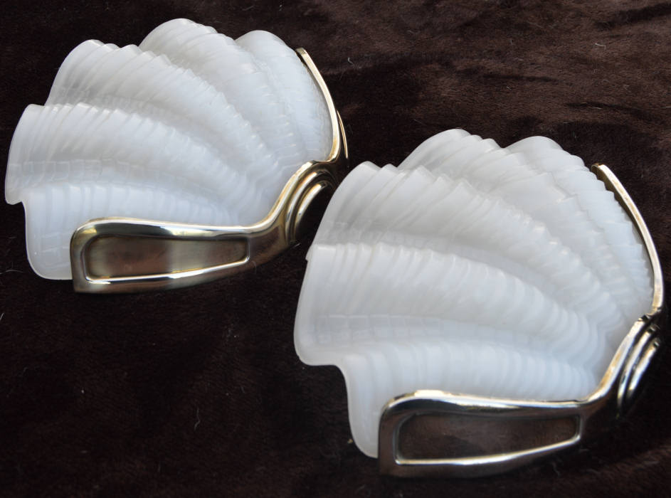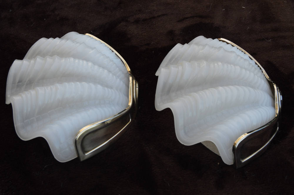 A beautiful pair of Art Deco Wall Lights of shell form . The chrome