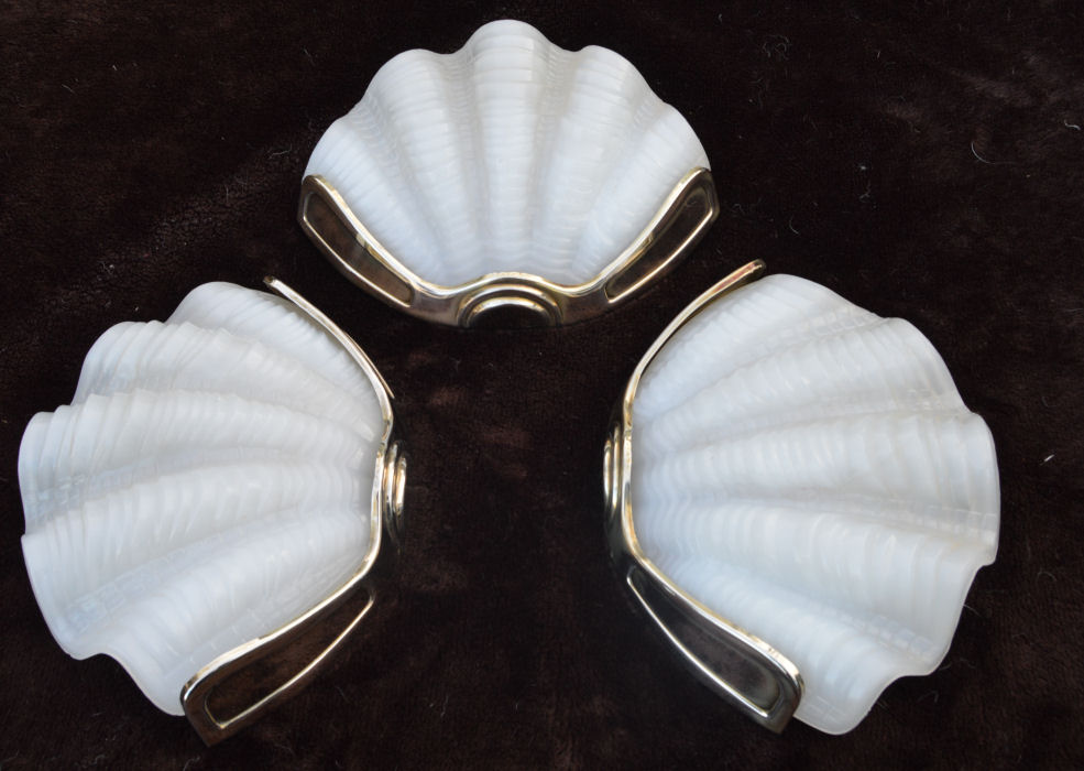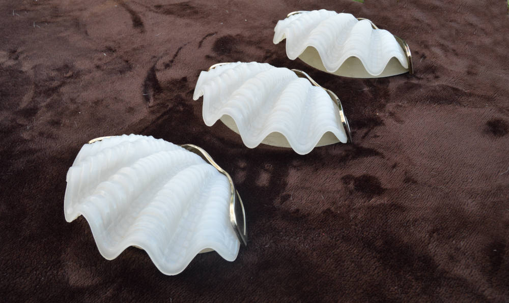 of 3 White Art Deco Shell Wall Lights