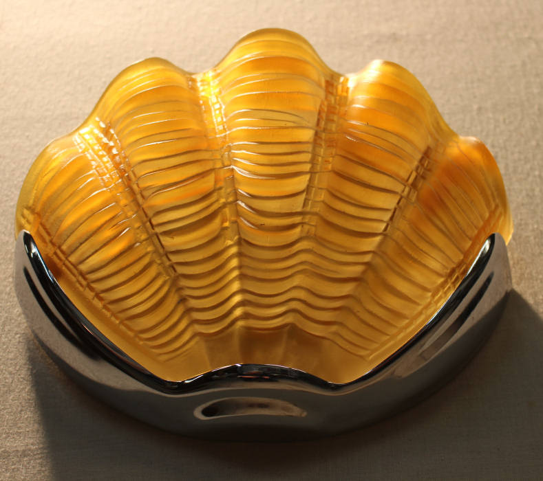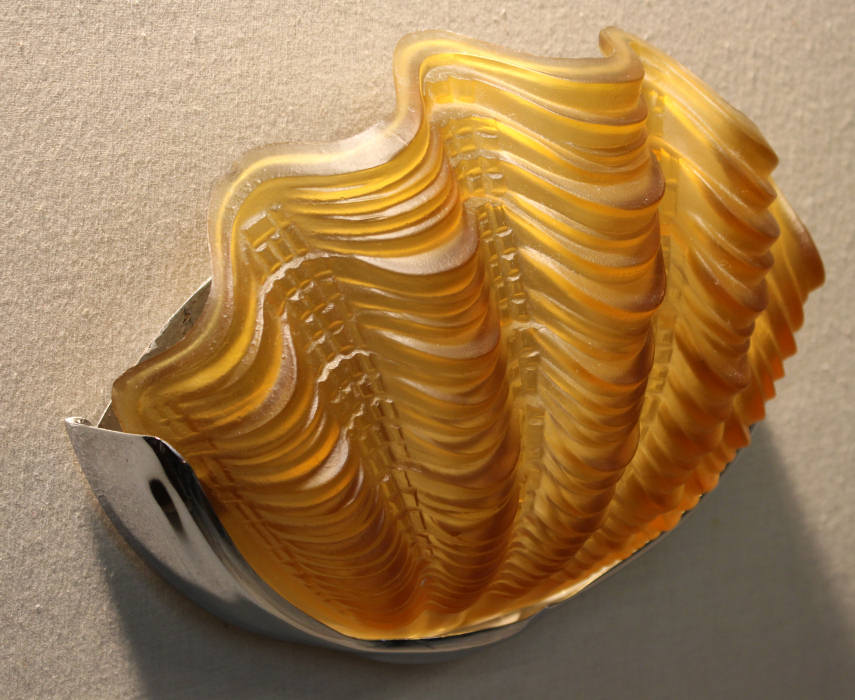 A beautiful Art Deco Wall Light of shell form . The chrome frame is