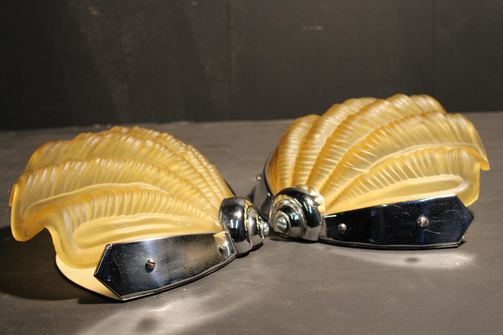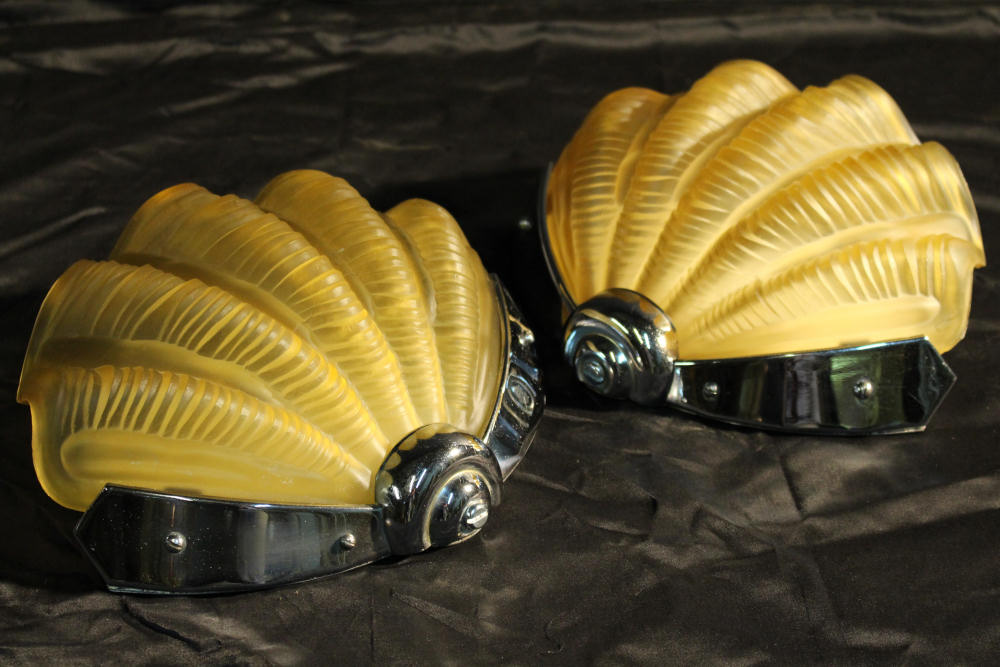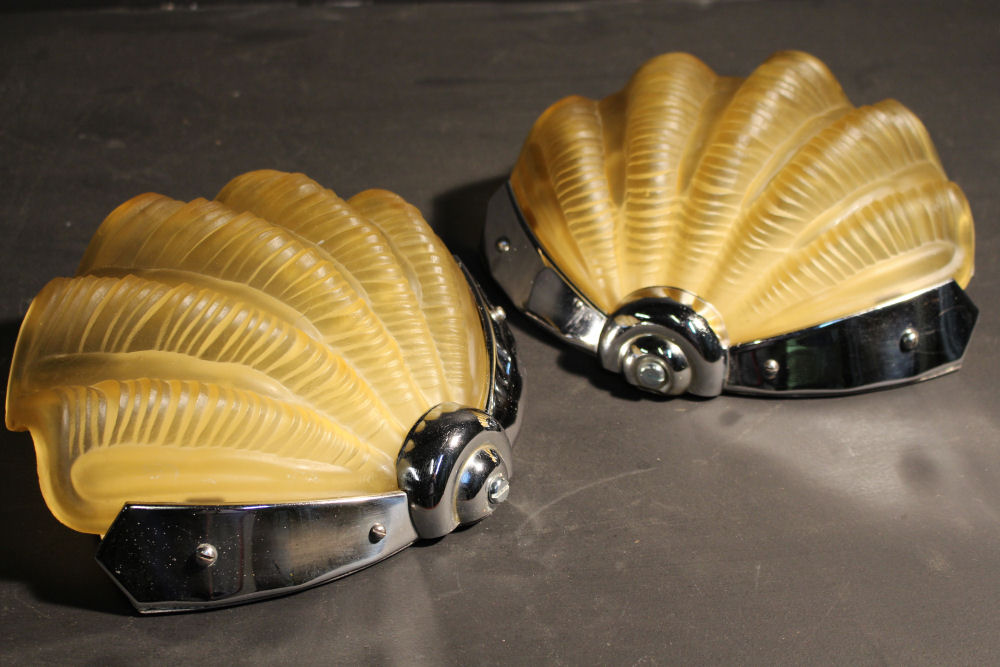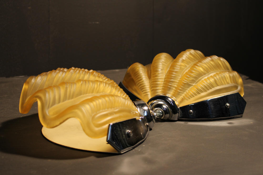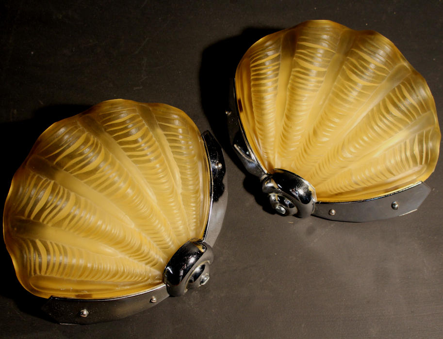 A beautiful pair of Art Deco Wall Lights of shell form . The chrome