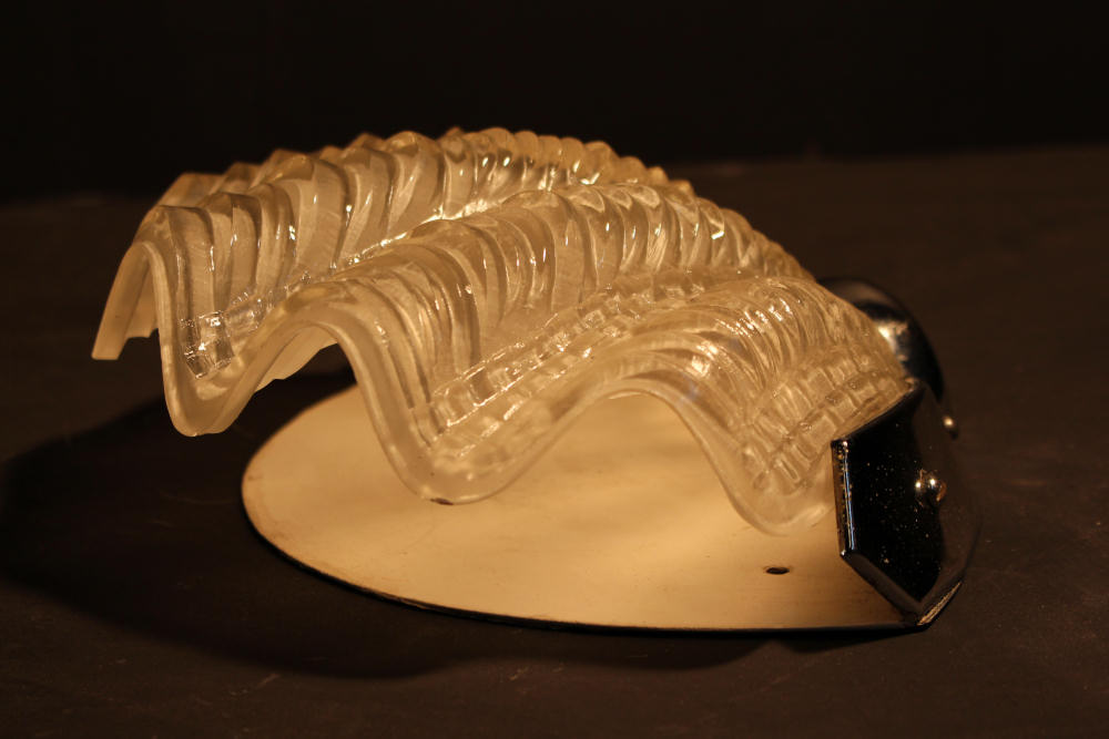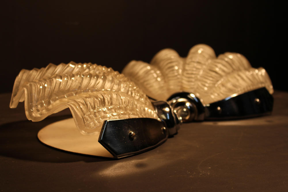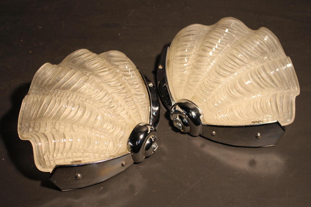 A beautiful pair of Art Deco Wall Lights of shell form . The chrome