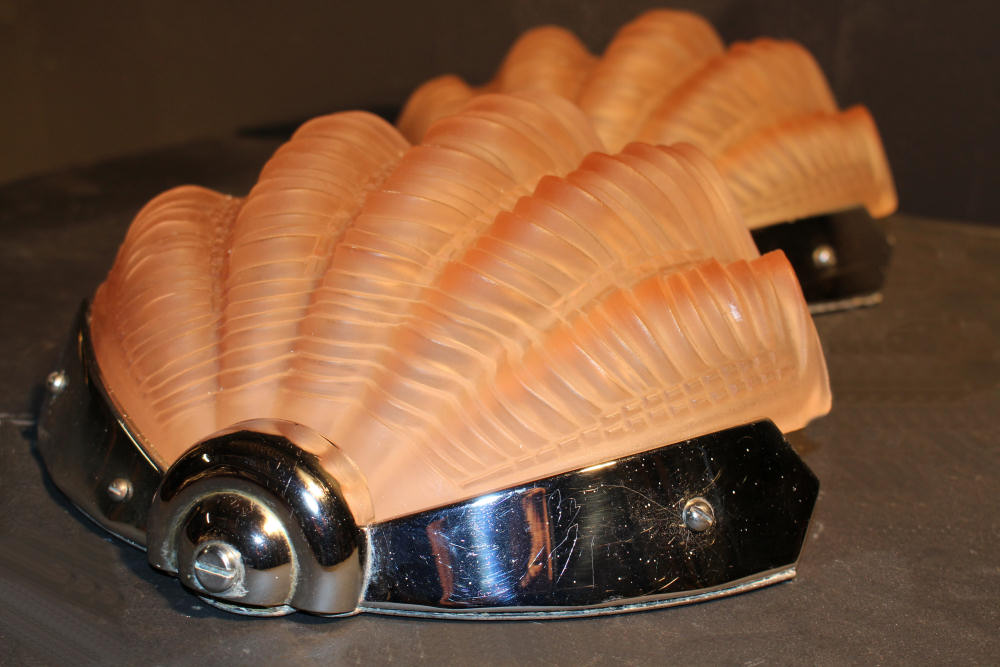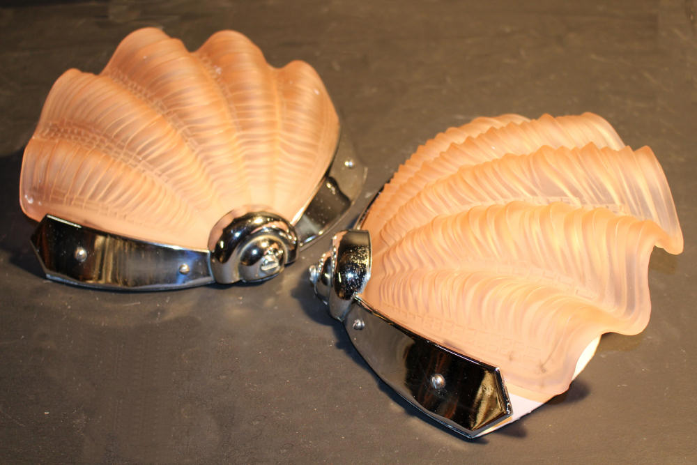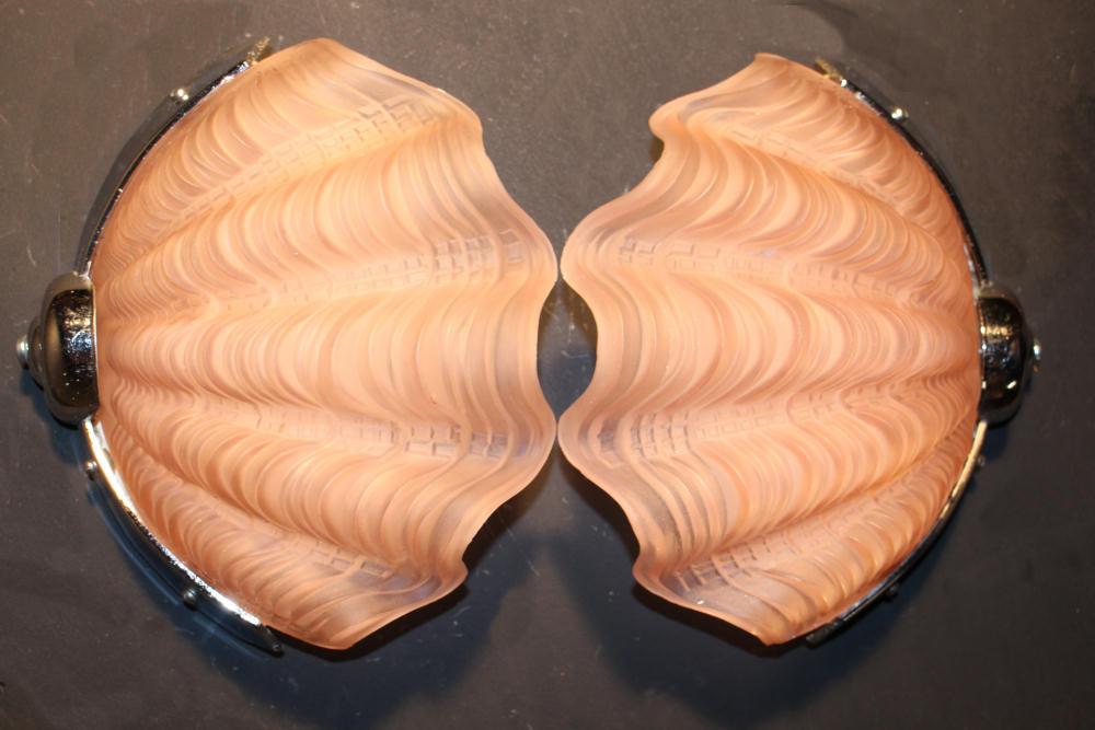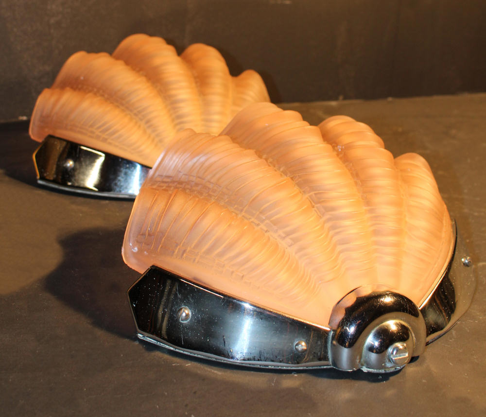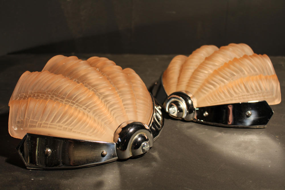 A beautiful pair of Art Deco Wall Lights of shell form . The chrome