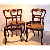 Set of 4 solid walnut Victorian balloon back dining chairs inc reupholstering