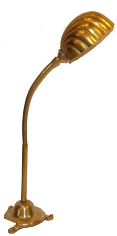 Circa 1900 an adjustable brass reading lamp with attractive brass shade, the whole surmounted on a brass weighted base with 3 delicate brass feet...