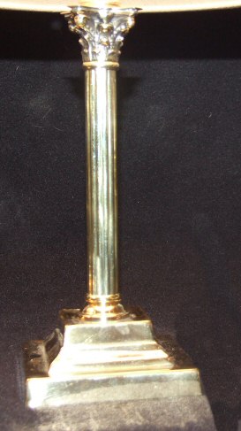 A near matching pair of Circa 1900 antique Corinthian Column Table lamps Circa 1900 a near matching pair of classic Corinthian Column brass table lamps of small proportions. They both feature stepped square bases with fluted stems terminating in acanthus capitals with pale blue shades provided. Both rewired with silk flex. Height 16.5" by 4" base Height 16" by 4.25" base SOLD (Ref : CHA64) Email Us for a delivery quote : Click Here