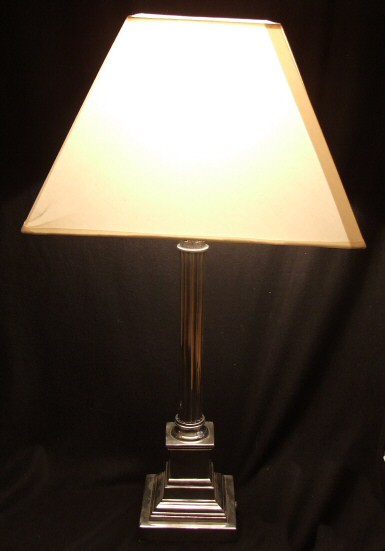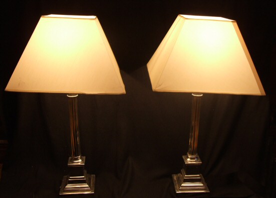 Circa 1900, a very large impressive pair of silver plated Corinthian Colun table lamps A superb pair of tall and impressive initialed silver plated table