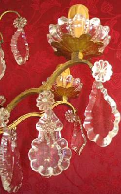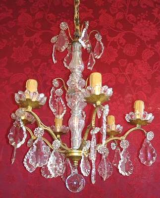 Circa 1900 this elegant 6 arm Louis XV1 style chandelier has attractive brass frame with glass bobeche and slender central stem. Drop 21" (plus chain) SOLD