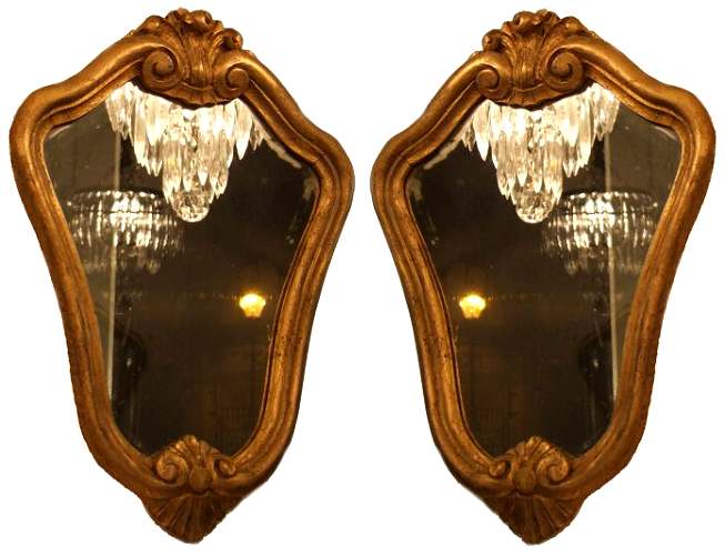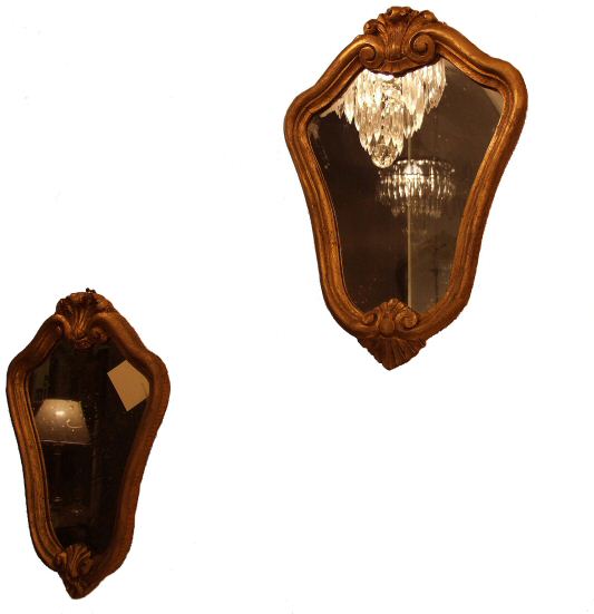 Attractive pair of Vintage Gilt wall mirrors From Italy this lovely small pair of antique wall mirrors are an exact match. Elegant and simple in design they will lift the darkest of corners. The gilt frame has acanthus detailing to the base and the top making these a pretty pair in lovely condition. Height 16.5" Width 11.5" Price £195 the pair (Ref : MIR49) Email Us for a delivery quote : Click Here