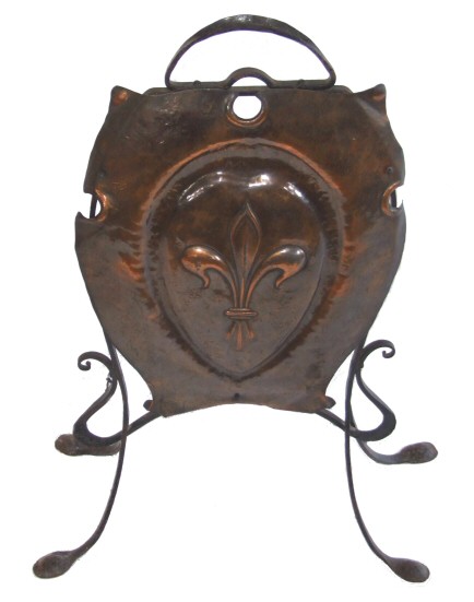 Attractive Art Nouveau Copper Firescreen An attractive Art Nouveau copper firescreen on wonderful stylised feet. The copper with embossed design typical of art nouveau pieces. In lovely original condition. H 28" W 20.5" feet Price £225 (Ref :MISC330) Email Us for a delivery quote :Click Here