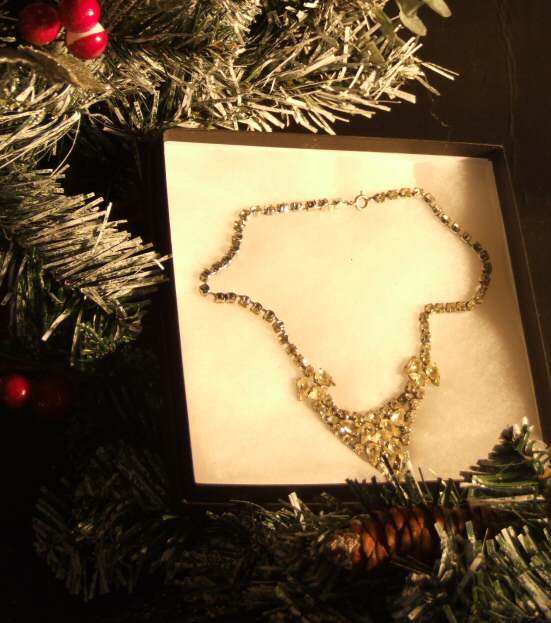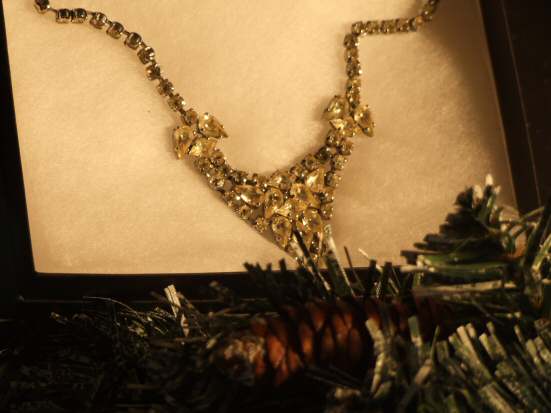 A lovely diamonte necklace dating to 1930 when glitz and glamour were paramount. Lovely sparkling stones set on an elegant chain.