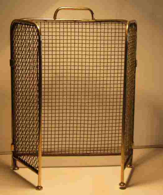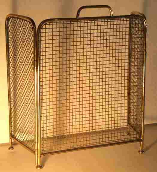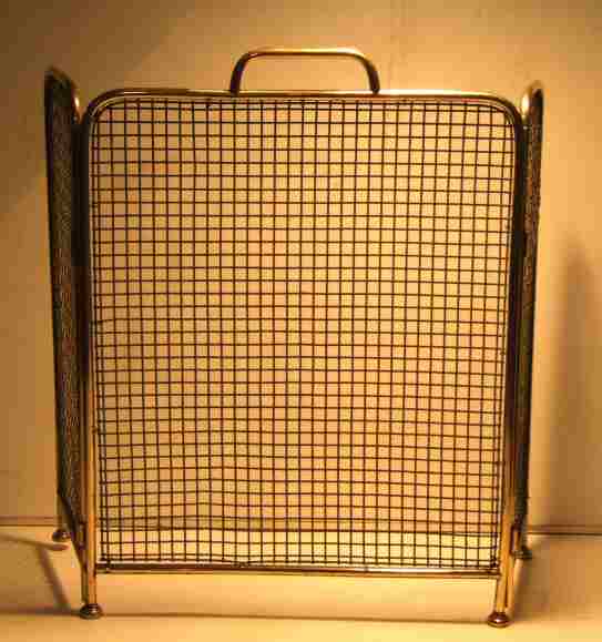 Edwardian triple folding brass firescreen. Edwardian triple folding brass firescreen on brass bun feet, with brass handle. Excellent condition with original mesh, central section is flanked by 2 rounded rectangular sections all in lovely condition. H 22" central section 16" plus end panels of 8"