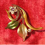 Elegant single flower diamonte brooch with lovely green leaf decoration £28.00 (Ref:MISC806) click photo for more info |