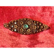 Attractive antique brooch with intrictate filagree detailing to each section and pretty blue diamonte stones, czecho £26.00 (Ref:MISC808) click photo for more info |