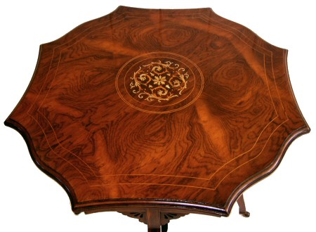 An Attractive Rosewood Inlaid Centre Table dating from 1900, the highly figured top has a central marquetry panel which is complimented by a second marquetry panel decorating the lower tier of the table. This elegant table features a scalloped edge and inlaid freize with carved fret work, the whole supported on elegant inlaid shapely legs terminating in original brass casters. Dimensions TBC SOLD (Ref : TAB00901) Email Us for a delivery quote : Click Here |