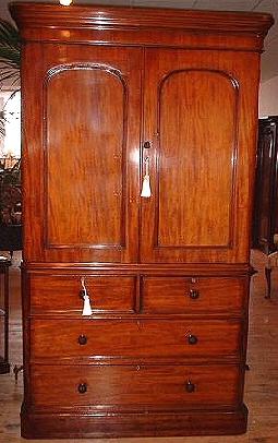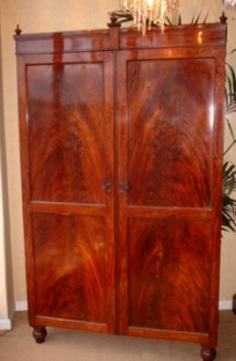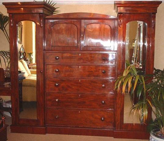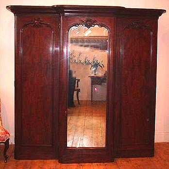 flame grain Early Victorian breakfront combination wardrobe. The central mirrored