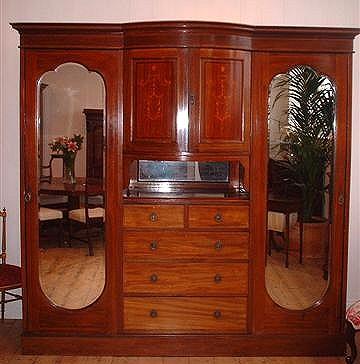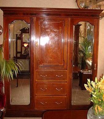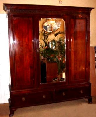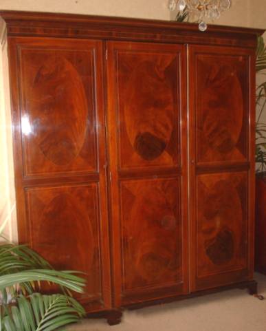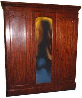 mahogany triple wardrobe, the central door being mirrored (in good Please email for a delivery quote (Ref BED0061) |