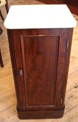 19th Century Mahogany Marbled Topped Pot Cupboard with single door opening to
