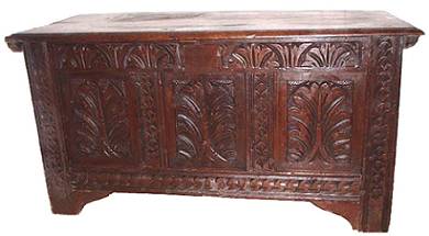 dimensions with 2 carved panels, fielded sides and plank top. SOLD (Ref BED3530) |