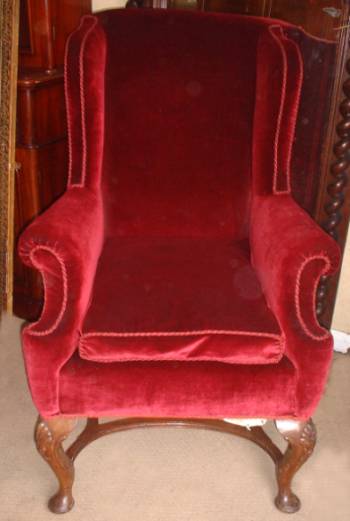 Circa 1920, an elegant Queen Anne style wing arm chair.