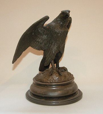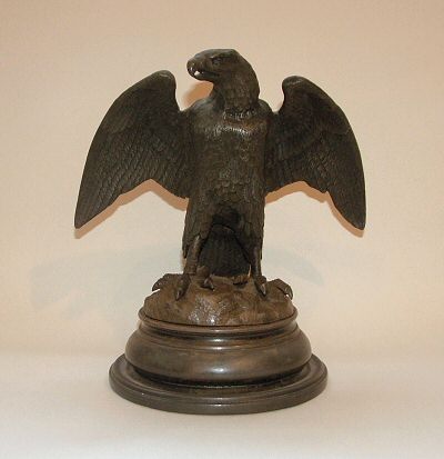 Beautiful Victorian spelter figure of a golden Eagle with outstretched wings, standing on a plinth. All in lovely condition with fabulous detailing.