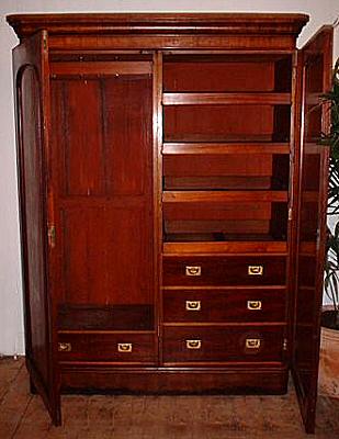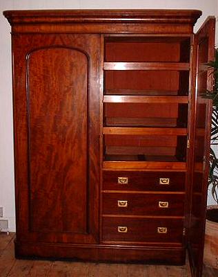 Victorian Double Combination Wardrobe with two large flame grain mahogany panelled
