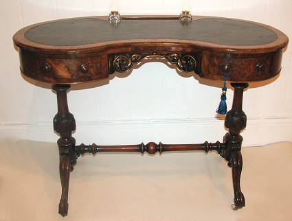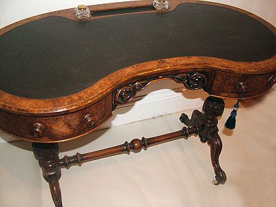 1850/60, A Victorian Kidney Shaped Desk. Veneered in superb burr walnut and raised