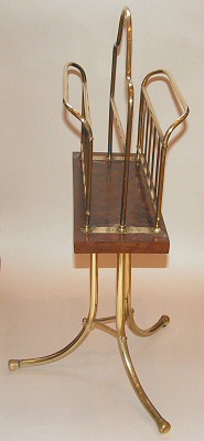 Fabulous vintage revolving magazine rack. This delightful magazine rack features brass legs and stand with Walnut base and is quite a rarity being in such excellent condition.